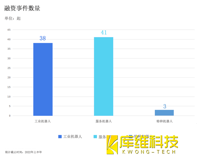 服務(wù)機(jī)器人賽道41起,而特種機(jī)器人為3起。投資領(lǐng)域偏好明顯,工業(yè)機(jī)器人和服務(wù)機(jī)器人賽道較為突出。