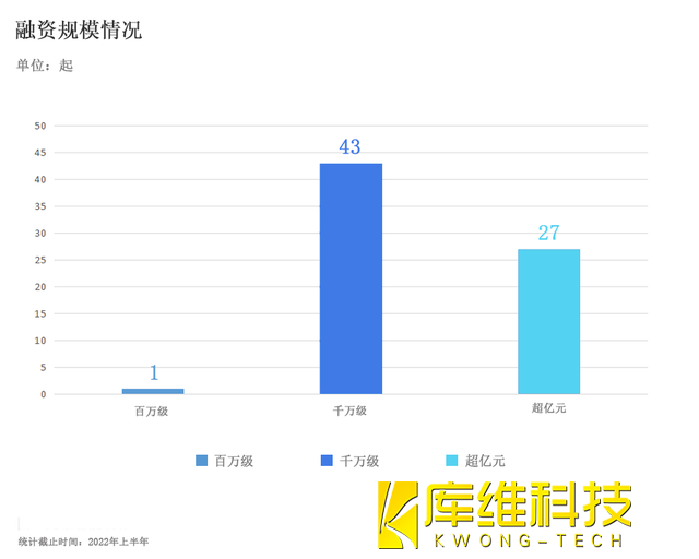 據(jù)光錐智能的不完全統(tǒng)計(jì),截至2022年上半年,已披露的融資事件數(shù)量總計(jì)82起,融資累計(jì)總金額超50億元,其中27起超億元人民幣。