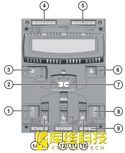 注意:KPP 的重量約為 10 kg. 在 KPP 的拆裝工作中存在擠傷危險!請戴防護手套5. 將新的 KPP 插進殼體支撐角鐵 (3)里,然后將其上部掛入角鐵并擰緊(擰緊扭矩 4 Nm)6. 按照插頭和線纜說明將所有接口插入. 將插頭 X20 和 X21 鎖緊.