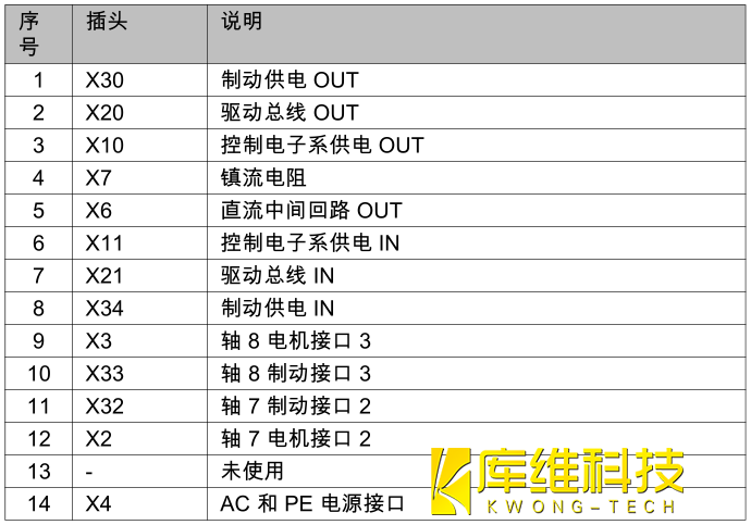 警告:若將機器人控制系統關斷,下列部件仍可能在長達 5 分鐘的時間內帶電 (50 … 780 V):