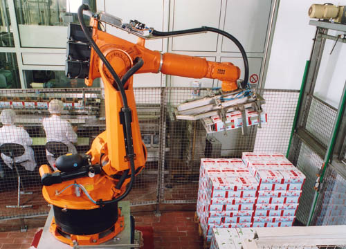 適用化工、建材、飼料、食品、飲料、啤酒、自動(dòng)化物流等行業(yè),配以不同抓手,可實(shí)現(xiàn)在不同行業(yè)各種形狀的成品進(jìn)行裝箱和碼垛。