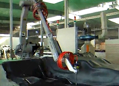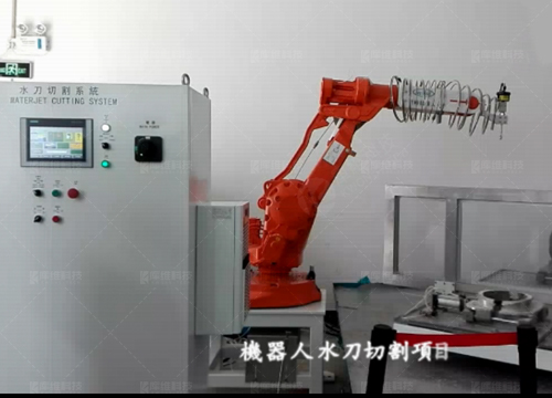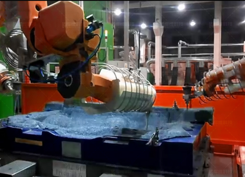 FA水切割,機器人可交替在兩個工位切割作業(yè),另一工位上下料,適合尺寸較大,精度要求高,復(fù)雜異形材料等切割加工,如車用頂棚、地毯等汽車內(nèi)飾件。
