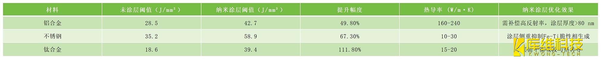 堆積閾值是指材料在單位面積內可承受的最大激光能量密度而不產生熔融物噴濺或過度堆積。納米涂層通過改變表面能態,使不同金屬的閾值發生系統性偏移: