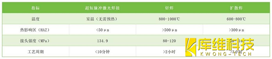 ??大面積焊接??:超短脈沖激光能量密度限制,難以實現>50mm²區域的均勻焊接。