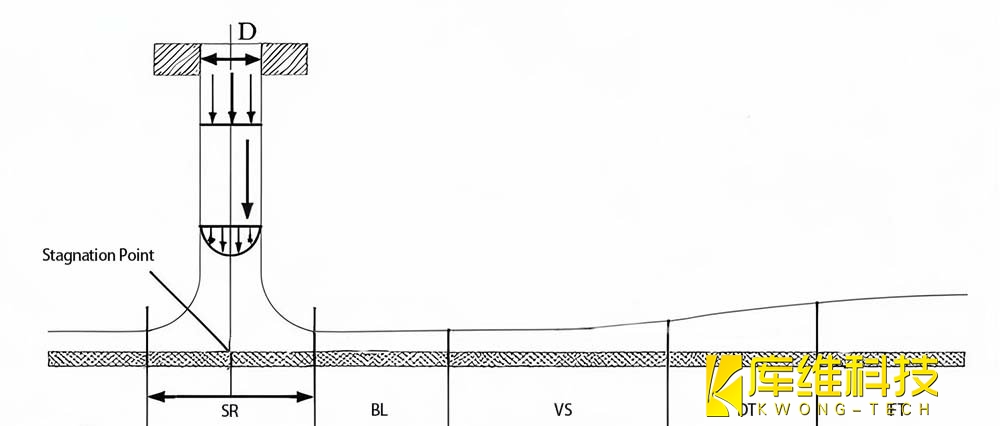 ??湍流發(fā)展區(qū)(DT/FT)??:射流完全湍流化,能量耗散加速。