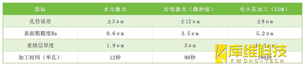 ??效率提升??:通過高功率納秒激光與水射流協(xié)同,單孔加工時間縮短至傳統(tǒng)工藝的1/15。