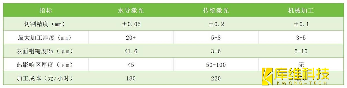 水流包裹激光束形成"液態光纖",能量密度均勻分布(>10^6 W/cm²),通過熔融材料與水射流動能協同作用,消除機械應力。毛刺高度降低至<5μm。