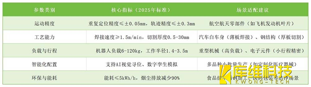 搭載激光輪廓傳感器與AI動態糾偏算法,設備重復定位精度普遍達±0.04mm(如kwong-tech 機器人),軌跡精度±0.3mm,較人工焊接(誤差±0.5-1mm)降低90%以上。