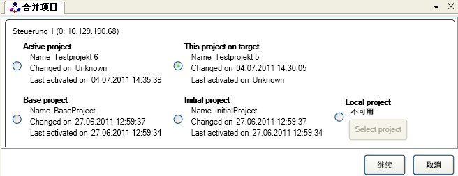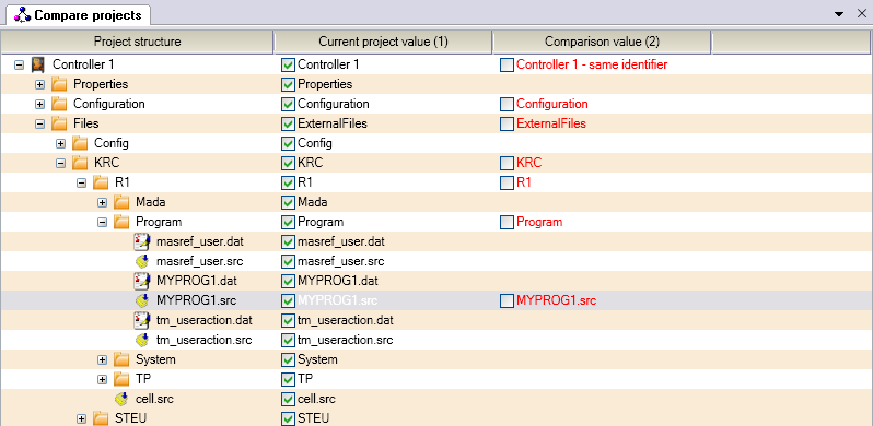 2. 選擇需與當(dāng)前 WorkVisual 項(xiàng)目作比較的項(xiàng)目,例如實(shí)際機(jī)器人控制系統(tǒng)上的同名項(xiàng)目。