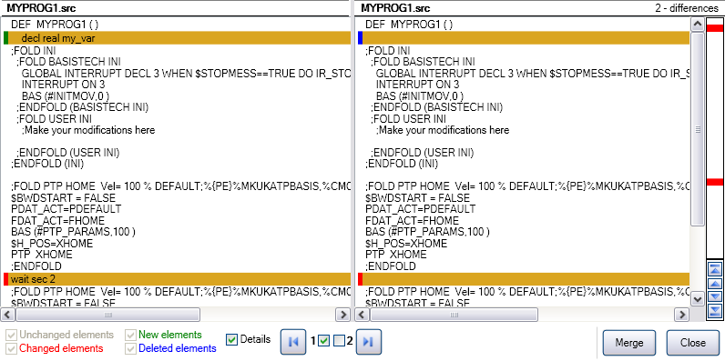 4. 當(dāng)進(jìn)度條已填滿且出現(xiàn)狀態(tài)顯示 “ 合并準(zhǔn)備就緒 ” 時, 點(diǎn)擊 【 顯示區(qū)別】鍵。 項(xiàng)目之間的差異即以一覽表的形式顯示出來。若未發(fā)現(xiàn)差異,則在信息窗口中顯示與此相關(guān)的訊息。 繼續(xù)執(zhí)行第 ?8 步。隨后無需執(zhí)行后續(xù)步驟。